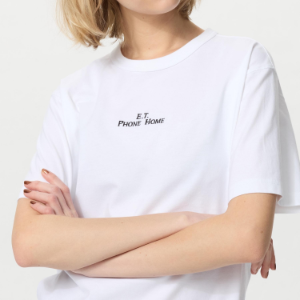 прямой, слегка свободный силуэт с классическим круглым вырезом и короткими рукавами