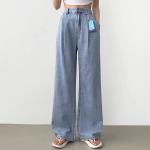• Летние длинные wide-fit джинсы с защипами, резинкой и эффектом охлаждения