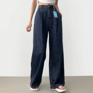Летние длинные wide-fit джинсы с защипами, резинкой и эффектом охлаждения