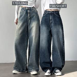 Женские джинсы с завышенной талией, варкой и ультра-широким кроем на кнопках
