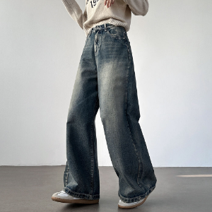 • Женские джинсы с завышенной талией, варкой и ультра-широким кроем на кнопках