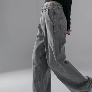 • Женские джинсы с эластичным поясом, защипами и широким кроем