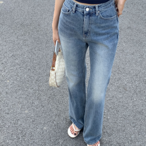 Женские джинсы средней посадки с полушироким кроем и удлинённым полубуткат силуэтом