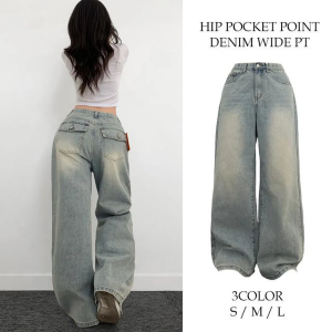 Женские широкие джинсы с фактурой слуб и накладными задними карманами
