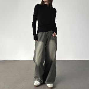 • Женские джинсы с завышенной талией, винтажной варкой и объёмным полу-баллонным кроем