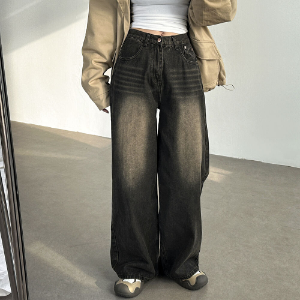 • Женские джинсы с завышенной талией, винтажной варкой и объёмным полу-баллонным кроем