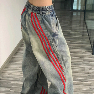 Женские широкие джинсы с задней резинкой и боковыми лампасами