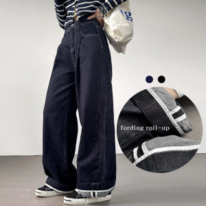 Женские wide-fit джинсы с высокой талией, защипами и отворотом
