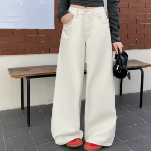 • Женские широкие однотонные брюки из плотного денима