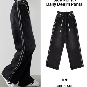 • Женские длинные wide-fit джинсы с декоративной бахромой по бокам