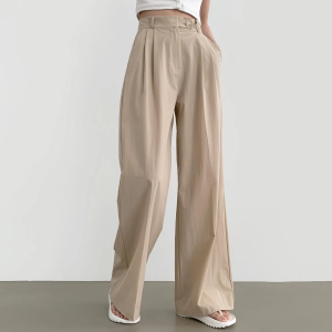 • Nylon Hidden Button Pin-Tuck Long Wide Summer Slacks Pants