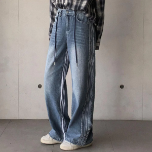 • Женские джинсы-треники с широкими штанинами и регулируемым шнурком