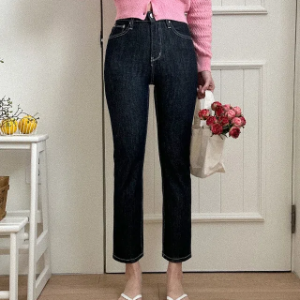 • Женские необработанные джинсы с высокой посадкой, прямым кроем и скрытой резинкой