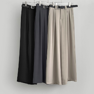 Two-Pintuck Perfect-Fit Belt-Set Wide Slacks