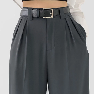 Two-Pintuck Perfect-Fit Belt-Set Wide Slacks