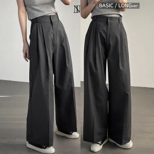 • High-Waist Two-Pintuck Cotton Long Wide Slacks