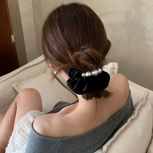 Женская бархатная резинка для волос с бантом и жемчужной деталью — элегантный акцент в вашем образе