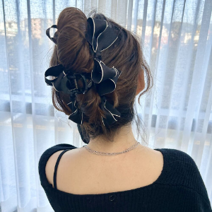 Черная заколка-краб с бантом — стильный аксессуар для элегантной укладки