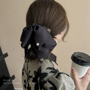Тканевая заколка-краб с бантом, украшенная жемчугом и стразами — изысканный акцент для вашей причёски