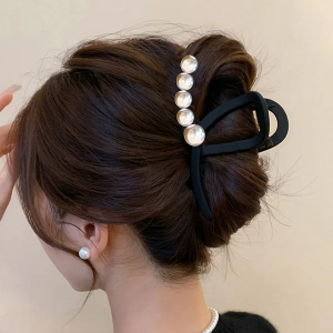 Женская заколка-краб большого размера с матовым жемчужным узором — классика на каждый день