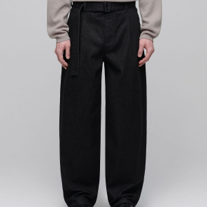 Belted Semi Balloon Denim Pants [Low Black]