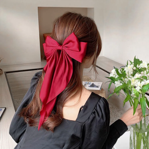 Большая атласная заколка с бантом — романтичный акцент в повседневной укладке
