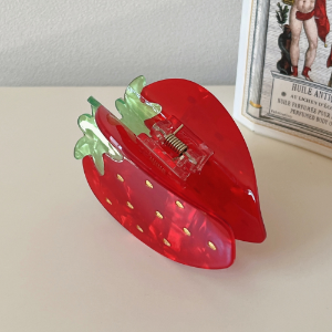 Яркая заколка-краб «Клубника» — милый акцент для полураспущенной причёски