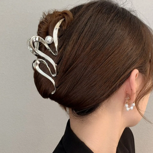 Жемчужная заколка-краб с волнообразным дизайном — элегантный акцент для длинных волос
