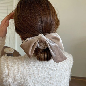 • Женская бархатная резинка для волос с бантом и кулоном в виде золотой монеты