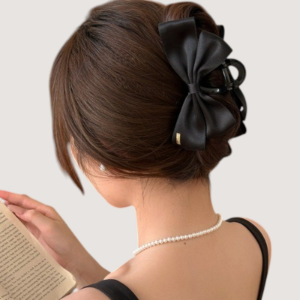 Крупная чёрная заколка-краб с бантом (13 см)