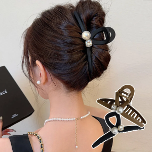 • Женская матовая заколка-краб с жемчугом и стразами — утончённый акцент для стильной укладки