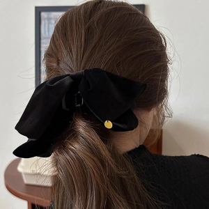 Женская замшевая заколка-краб с большим бантом — изящный акцент для праздничного образа
