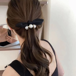Женская резинка для волос с двойным бантом и жемчужным декором — нежный акцент для романтичного образа