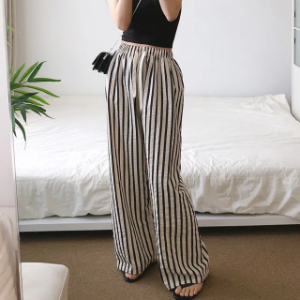 Лёгкие полосатые брюки из жатой ткани Gingham Stripe Wide Pants
