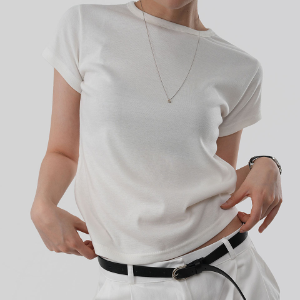 Крой прямой или слегка свободный силуэт с короткими рукавами и округлым вырезом