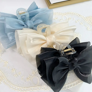 Женская большая заколка-краб с атласным бантом — нежный акцент для романтичного образа