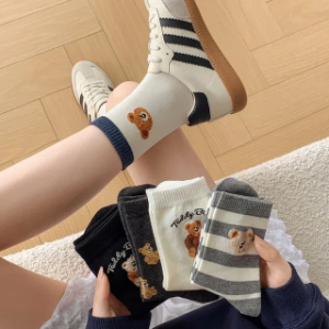 Набор из 5 пар женских носков с вышивкой "Мишка" — милый акцент для повседневного образа