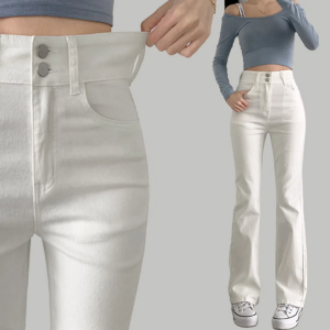 • Базовые облегающие хлопковые брюки с пуговицами и лёгким клёшем Basic Semi Bootcut Stretch Cotton Pants