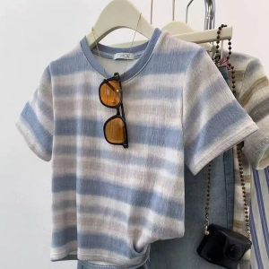 прямой или слегка свободный силуэт с классическим круглым вырезом и короткими рукавами
