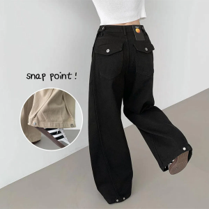 Мега широкие хлопковые брюки с регулируемой талией и кнопками 2-Way Cotton Snap Button Folding Pants