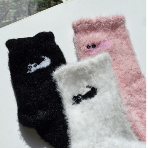 Набор из 3 пар ангоровых носков с котиками — мягкое тепло и милый стиль для зимы (черный, белый, розовый)