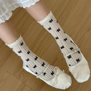 • Полупрозрачные носки Hinako с горошком, рюшей и бантом — романтичный акцент на каждый день