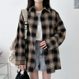 • Unisex Oversized Vintage Check Balloon Long Sleeve Shirt