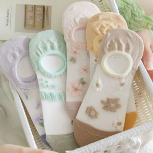 Kaios — комплект из 5 пар пастельных носков с цветочной вышивкой и силиконовой фиксацией