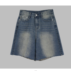 Бермуды из денима с эффектом cat brush, высокой посадкой и необработанным краем