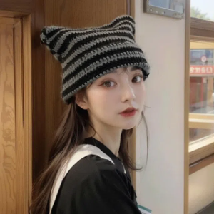 Тёплая зимняя шапка с "рожками" — стильный акцент для яркого зимнего образа