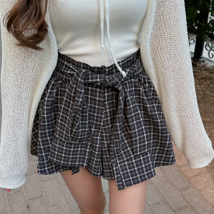 Клетчатая юбка-шорты с запахом и завязками Kiri