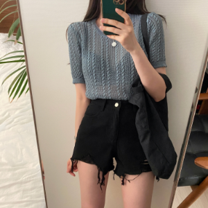 Ультракороткие джинсовые шорты с потертостями и необработанным краем