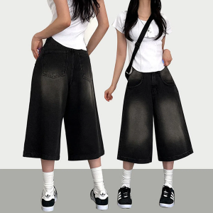 Широкие джинсовые шорты-бермуды с винтажной стиркой, 7/8, большого размера