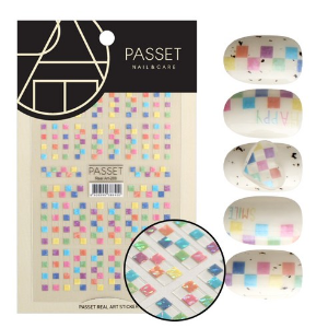 Наклейка для ногтей Passet Real Art, цветная голограмма в клетку..., 1шт